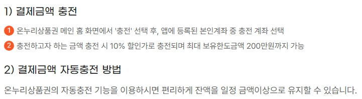 - 온라인 사용처: 온누리 마켓, 온누리시장 등 일부 온라인 쇼핑몰